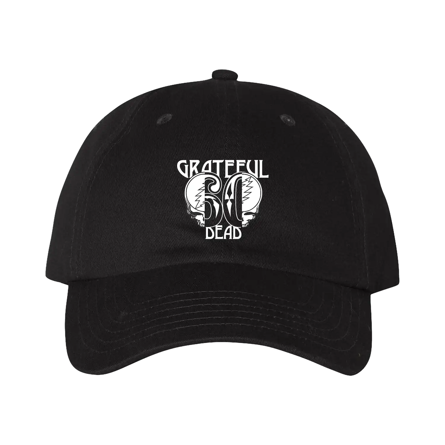 Adult Bio-Washed Classic Dad Hat Embroidered with 60th anniversary logo art on front - 100% cotton bio-washed chino twill; Unstructured, six-panel, low-profile; Pre-curved visor; Self-fabric tri-glide buckle closure - antique brass
