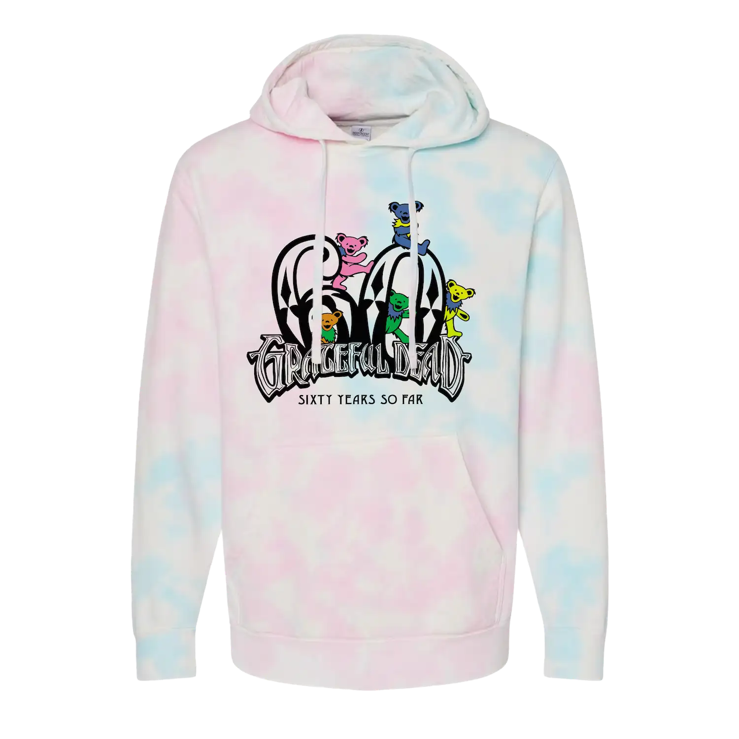 Midweight Tie-Dyed Hooded Sweatshirt printed with artwork celebrating the 60th anniversary of the band.