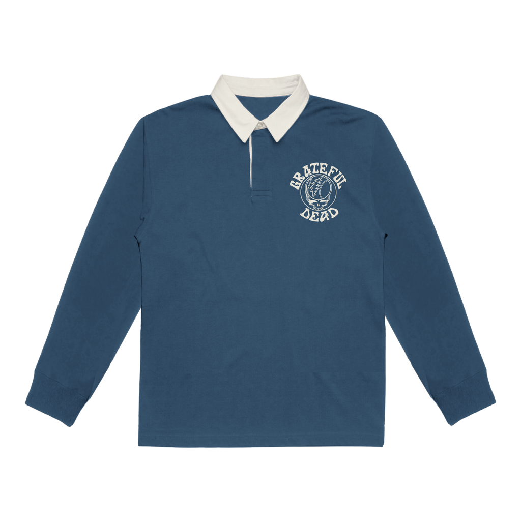 Camp Collection Unisex Hidden Placket Long Sleeve Polo embroidered on front.