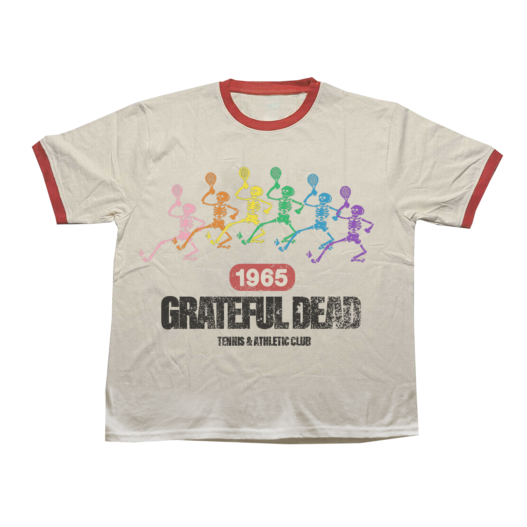 Vintage White Unisex Fine Jersey Ringer T-Shirt with red piping printed on front.
