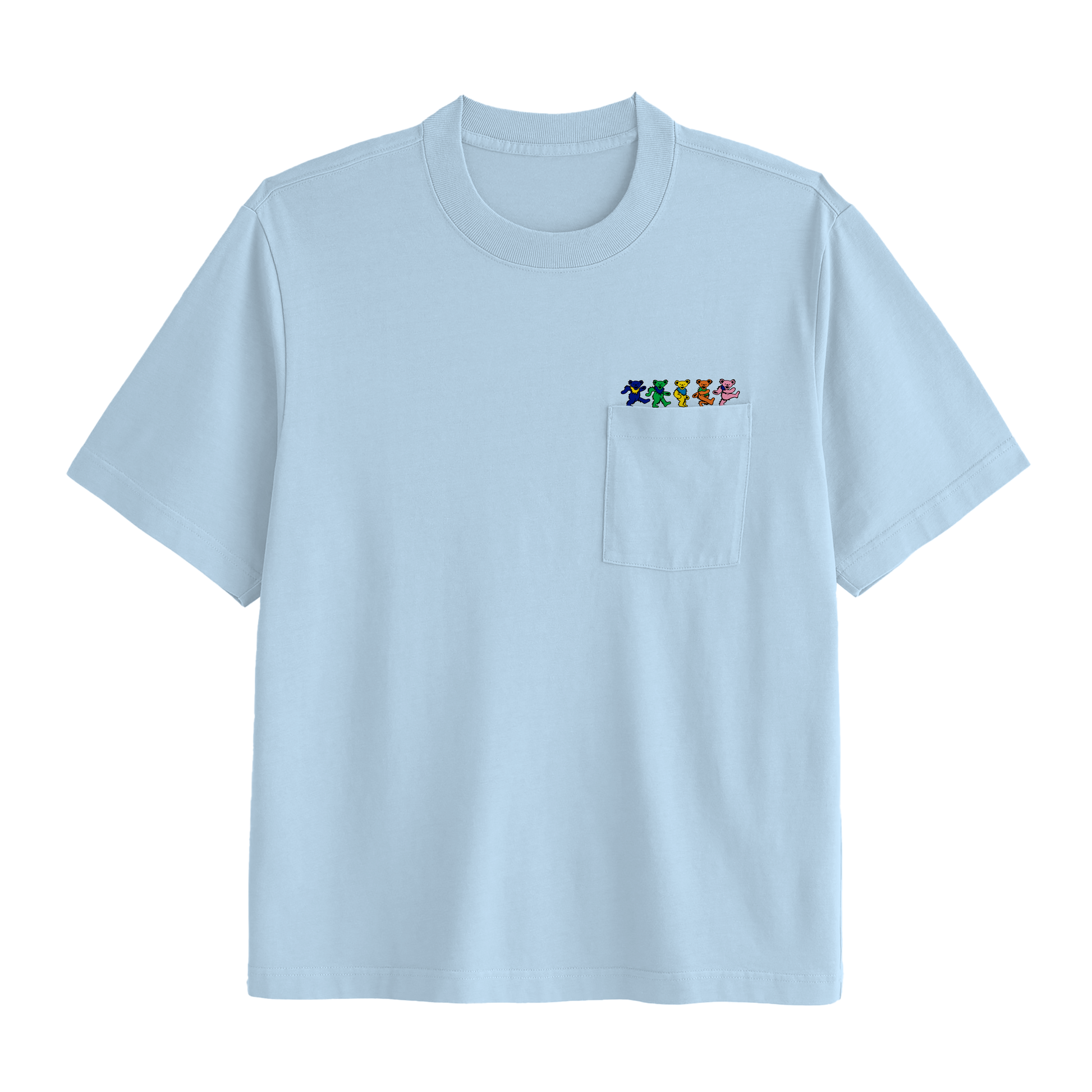 Unisex garment-dyed pocket t-shirt printed with marching bears on front. T-shirt is garment-dyed for that lived in feel and almost no shrinkage at home.